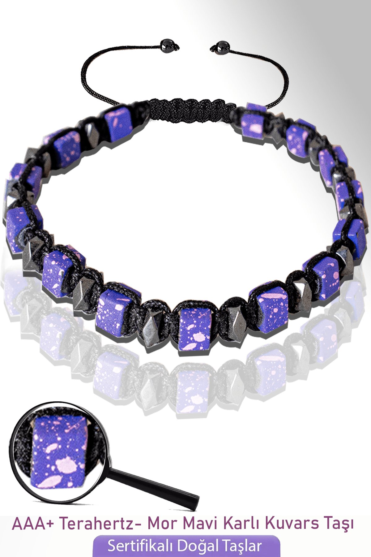 Sertifikalı Küp Model Mor Karlı Kuvars Taşı Bileklik - Ayarlamalı