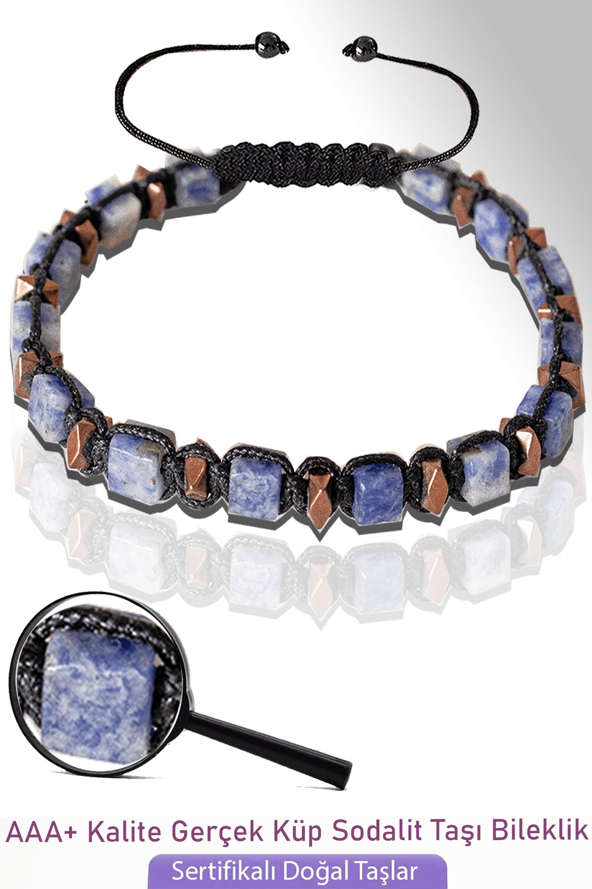 Sertifikalı Küp Model Sodalit Taşı Bileklik - Ayarlamalı