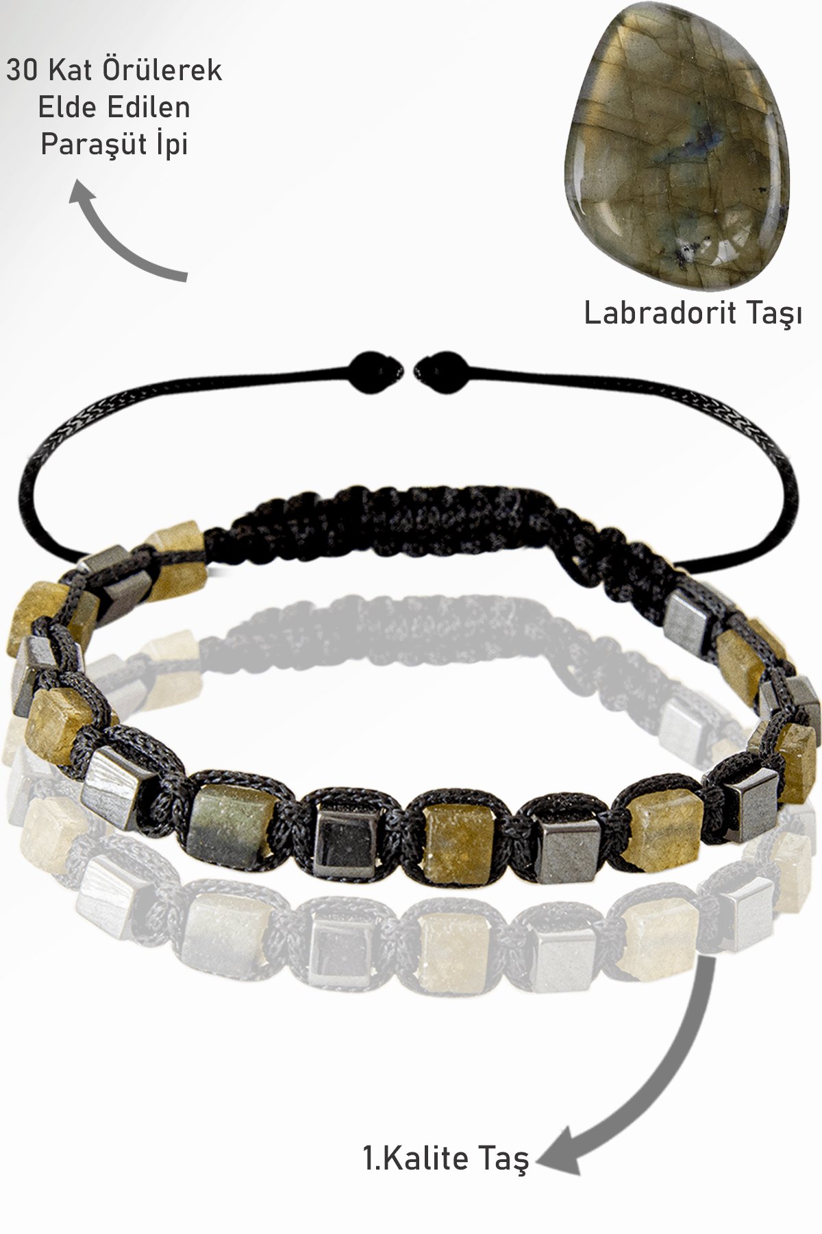 Sertifikalı Küp Model Terahertz - Labradorit Taşı Bileklik - Ayarlamalı