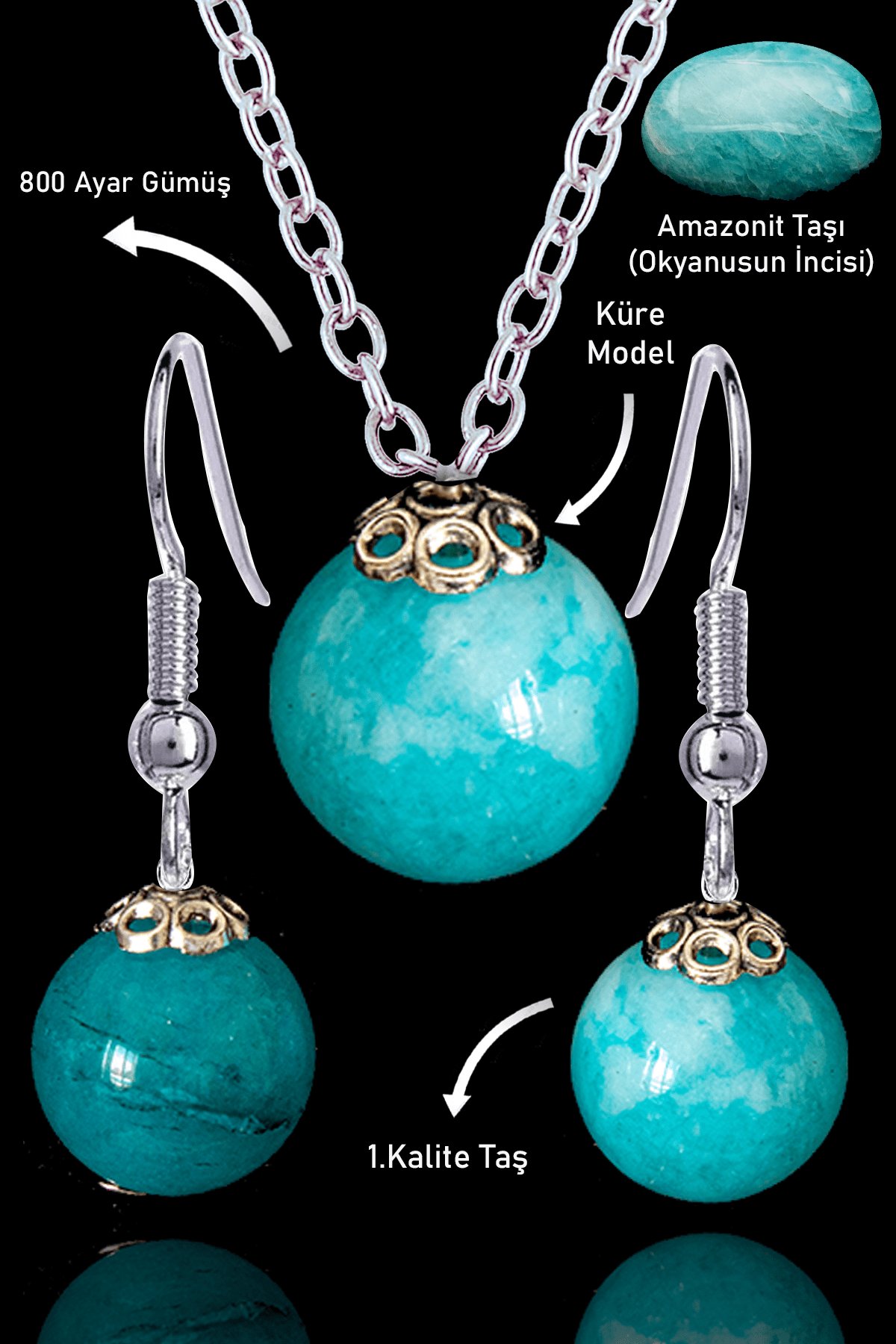 - ÜRÜN : Doğal Amazonit Taşı Kolye ve Küpe
