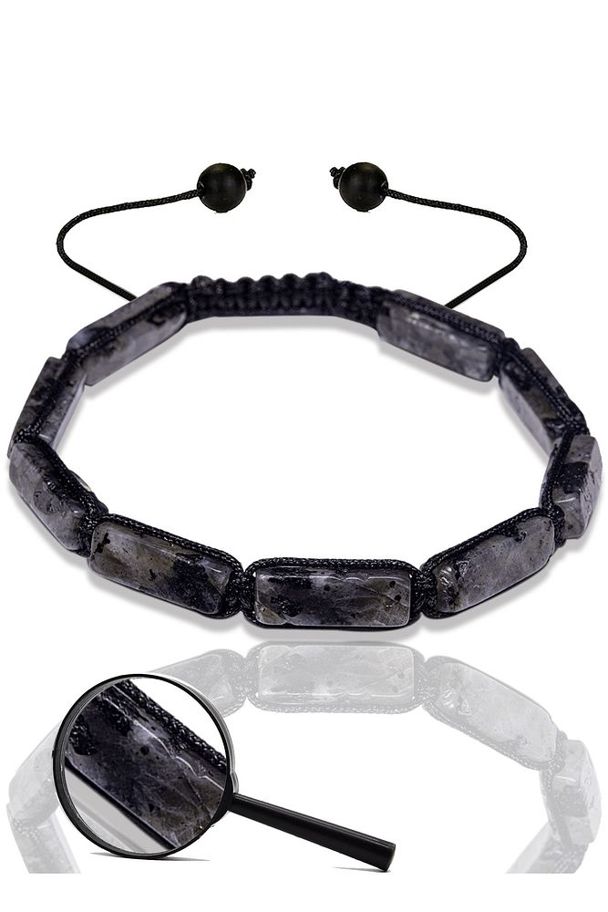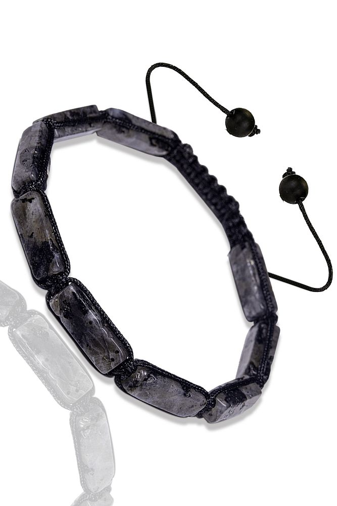 Labradorit taşı kullanılarak tasarlanmış makrome örgülü doğal taş bileklik ortalama 18 CM uzunluğunda olup 20-22 CM\'ye kadar açılarak bileğe göre ayarlanabilir. Taşın yaklaşık ölçüsü 5X13.