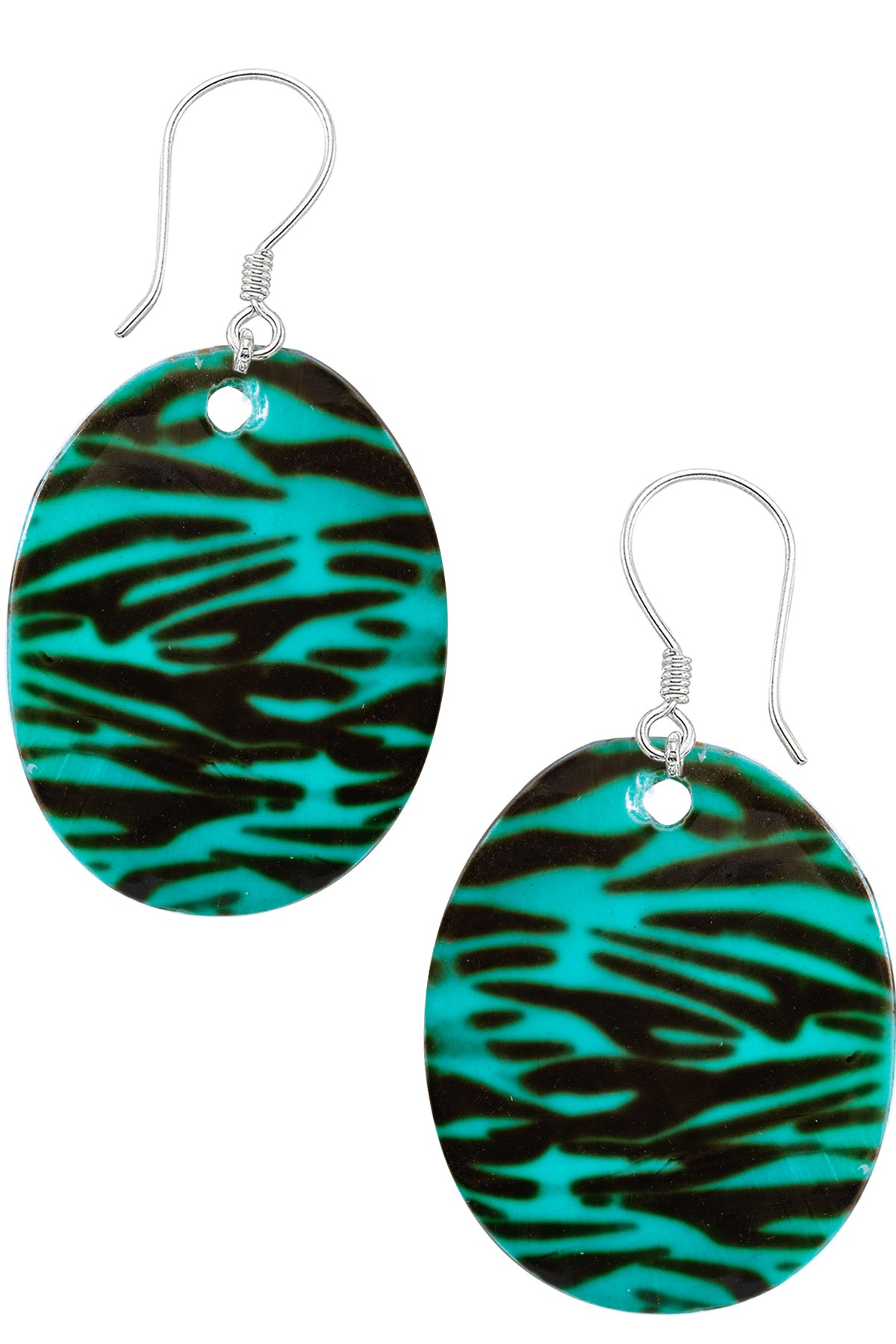 Sertifikalı Leopar Desenli Oval Mavi Renkli Sedef Taşı Küpe