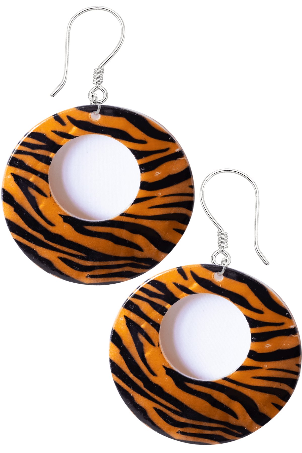 Sertifikalı Leopar Desenli Turuncu Renkli Sedef Taşı Küpe