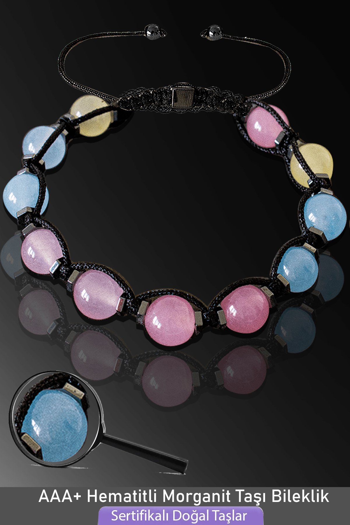 Sertifikalı Makrome Akuamarin Pembe Kuvars Morganit Taşı Bileklik