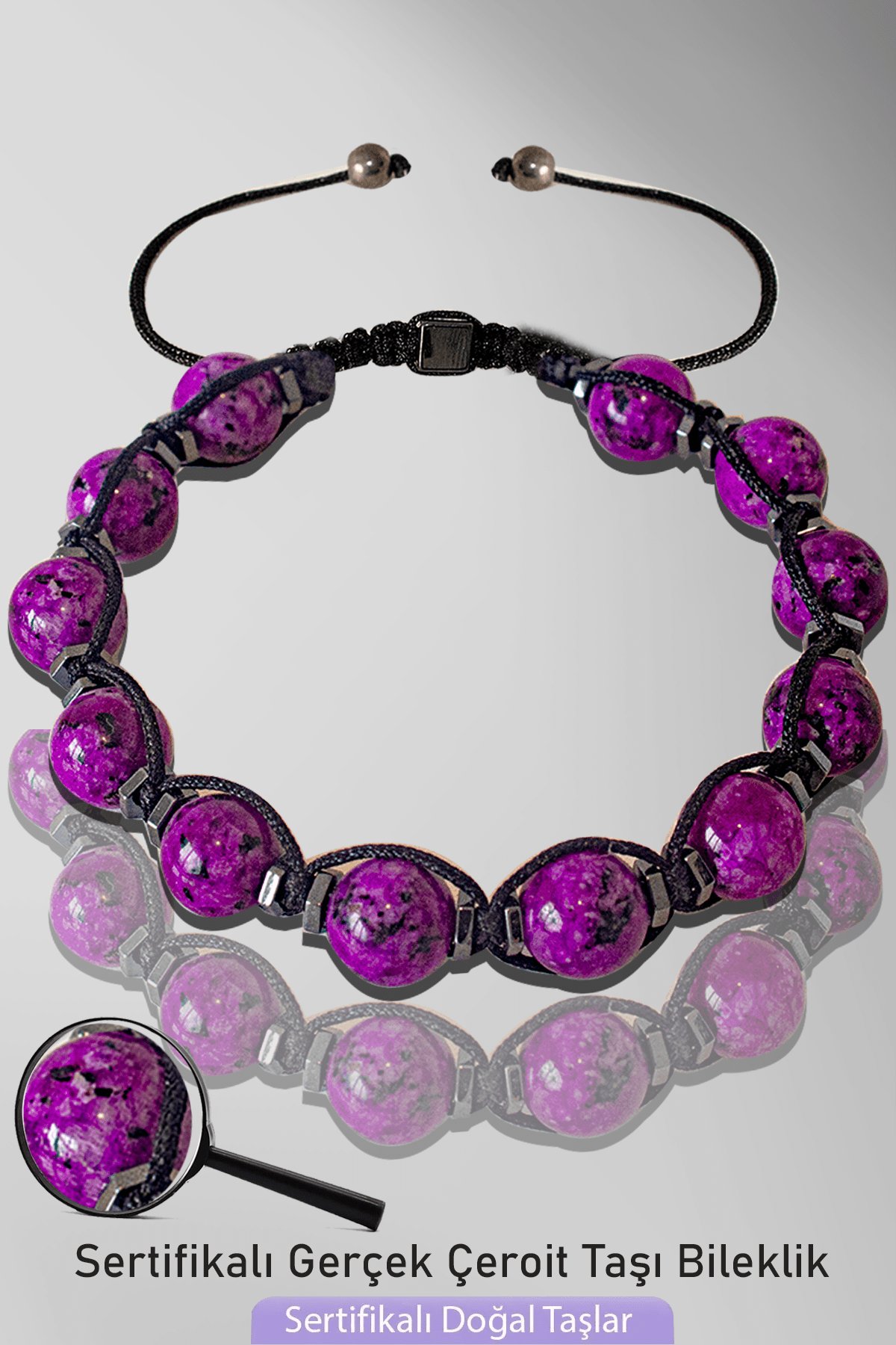 Sertifikalı Makrome Doğal Gerçek Çeroit Taşı Bileklik - Ayarlamalı