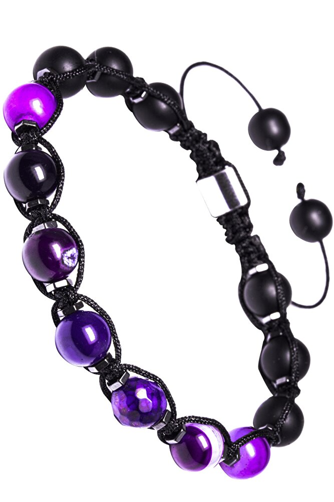 Sertifikalı Makrome Doğal Oniks Ametist Taşı Bileklik