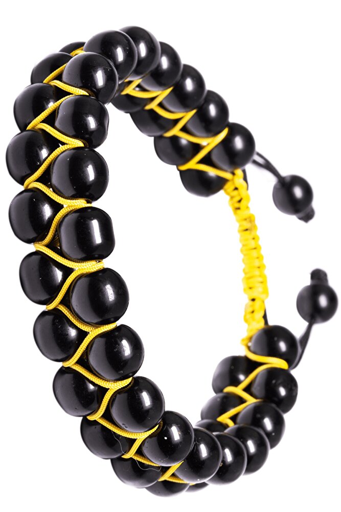 Sertifikalı Makrome Hardal Çift Sıra Parlak Doğal Oniks Taşı Bileklik