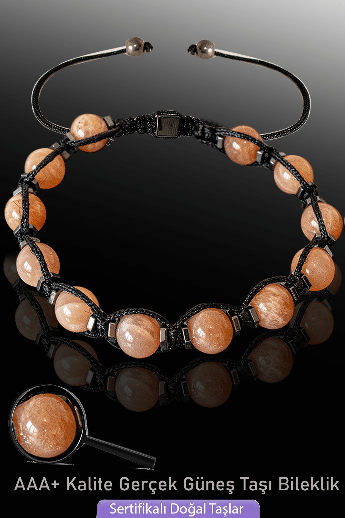 Sertifikalı Makrome Hematitli Gerçek Güneş Taşı Bileklik - Ayarlamalı