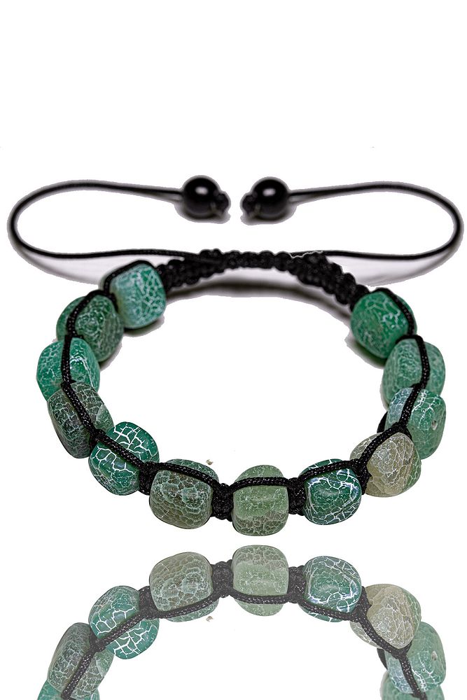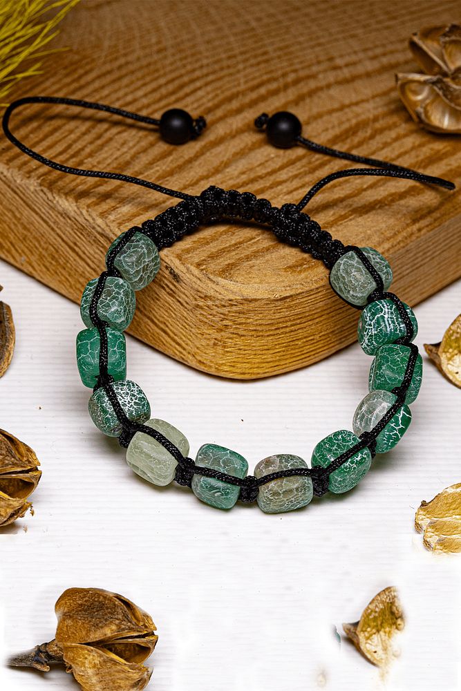 Sertifikalı Makrome Küp Kesim Damarlı Yeşil Akik Taşı Bileklik