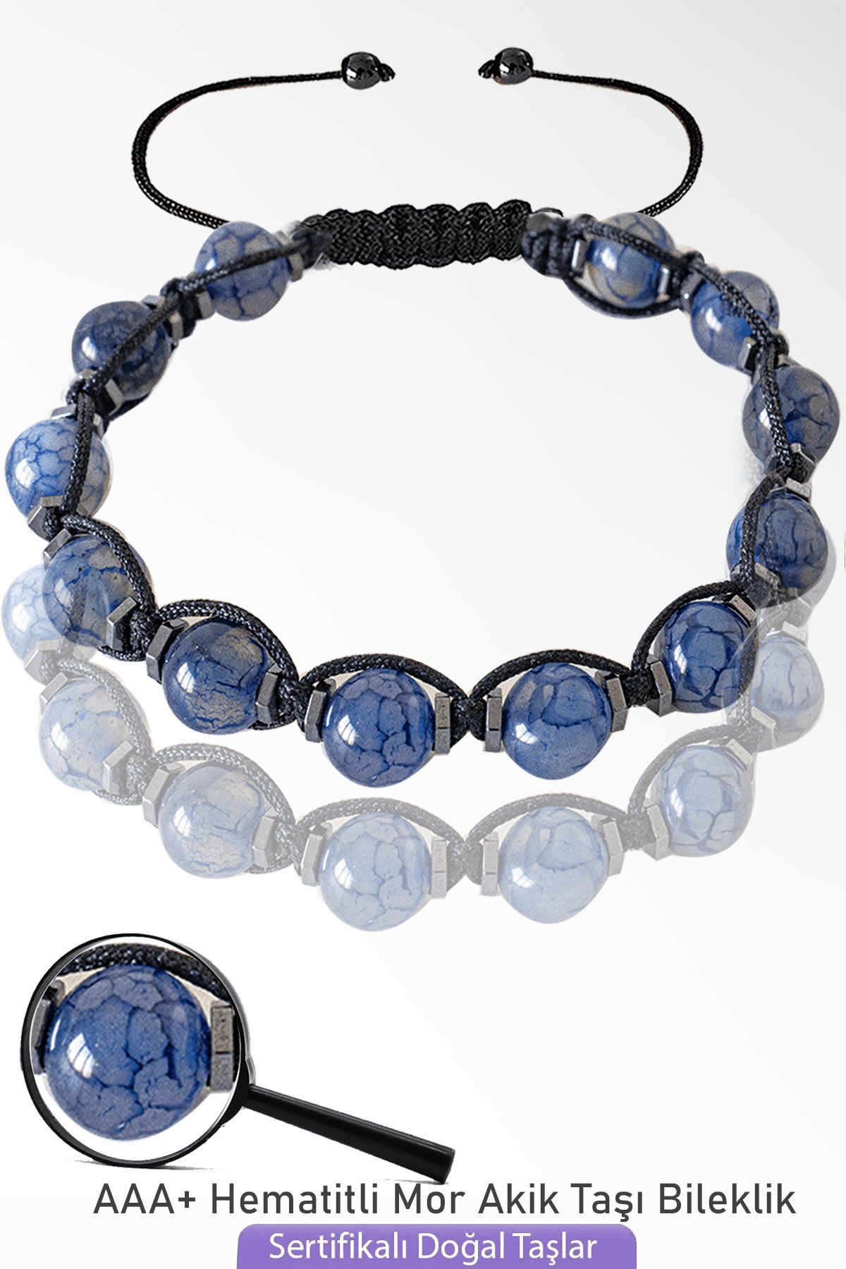 Sertifikalı Makrome Mor Akik Taşı Bileklik - Ayarlamalı