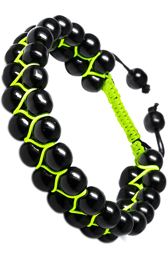 Sertifikalı Makrome Neon Yeşili Parlak Doğal Oniks Taşı Bileklik