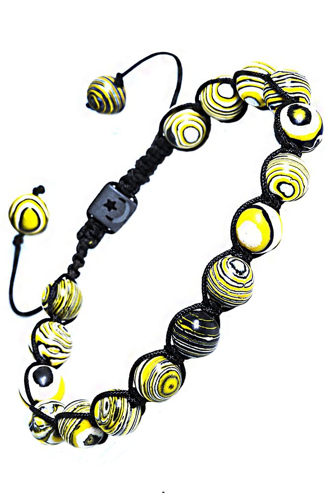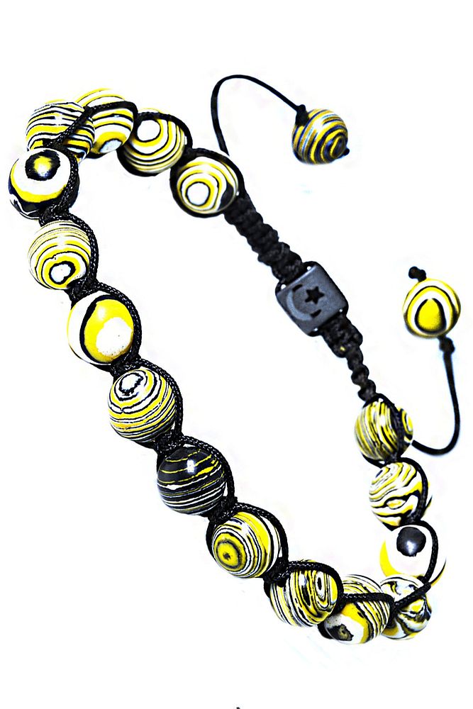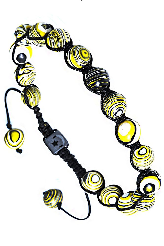 Sertifikalı Makrome Sarı Doğal Malahit Malakit Taşı Bileklik