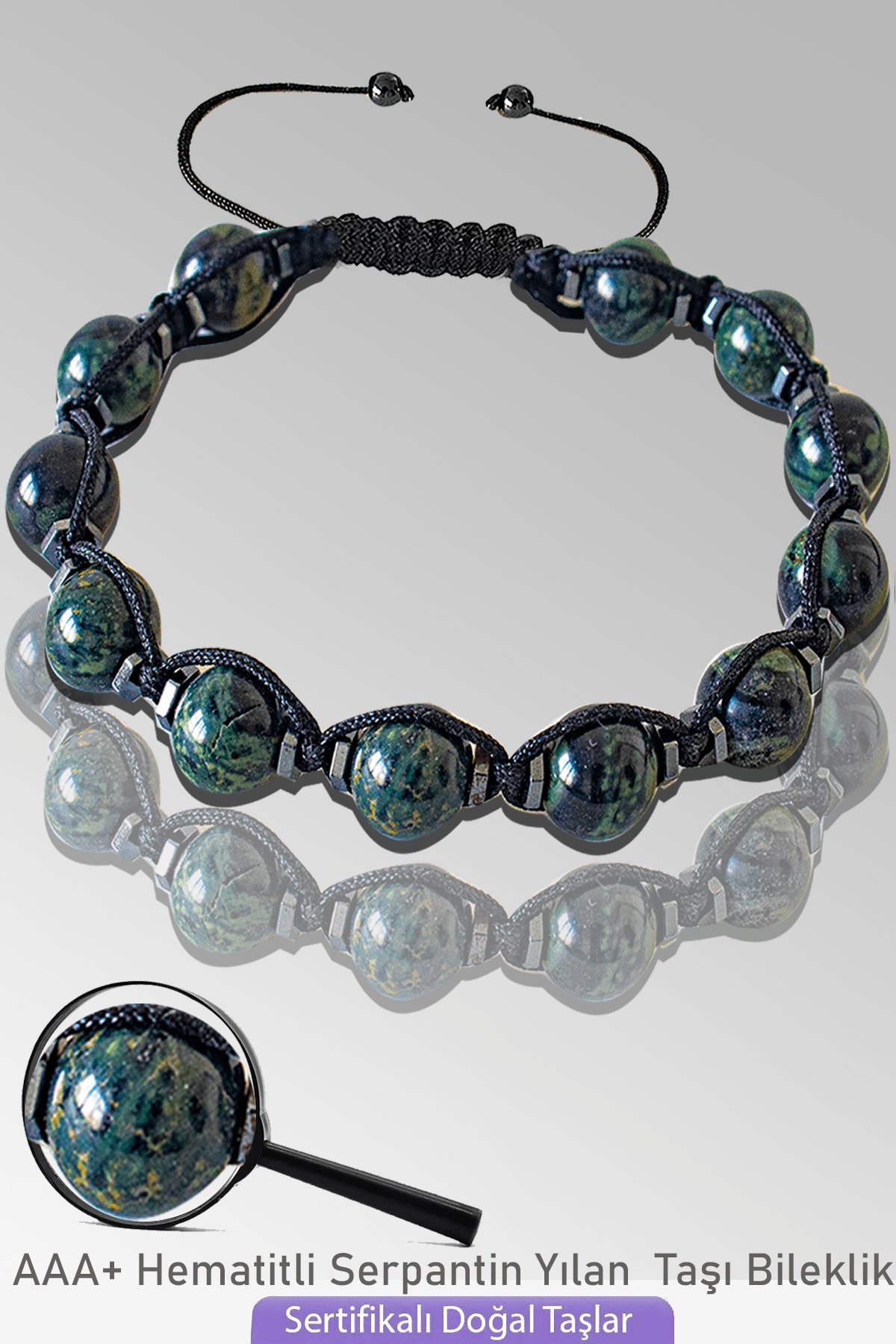 Sertifikalı Makrome Serpantin Yılan Taşı Bileklik - Ayarlamalı