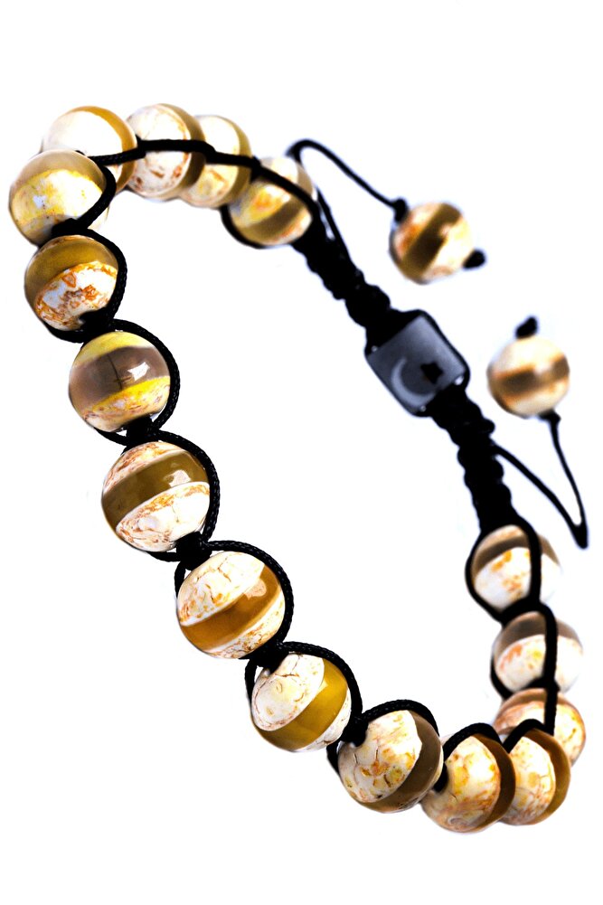 Sertifikalı Makrome Sürmeli Bej Doğal Akik Taşı Bileklik