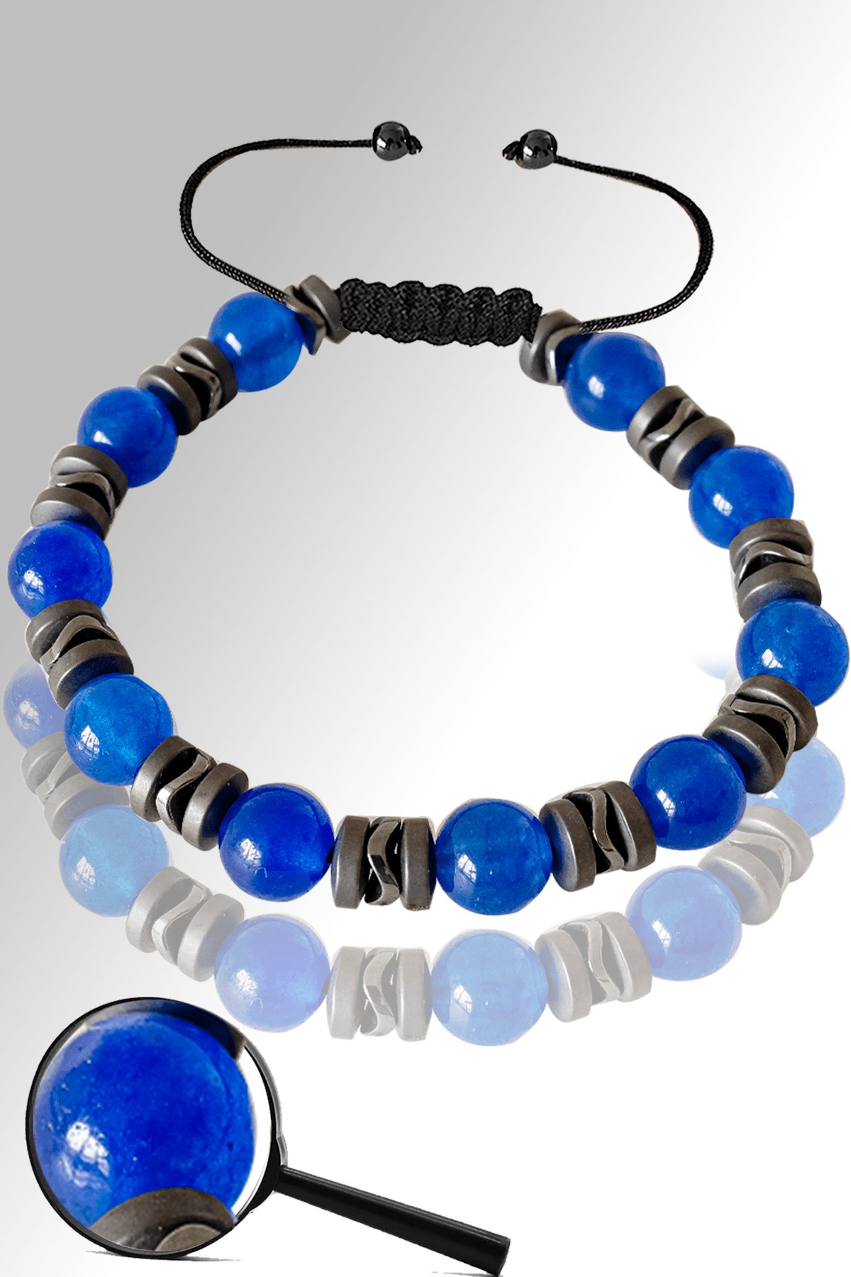 Sertifikalı Mat Hematit - Mavi Akik Taşı Bileklik - Ayarlamalı