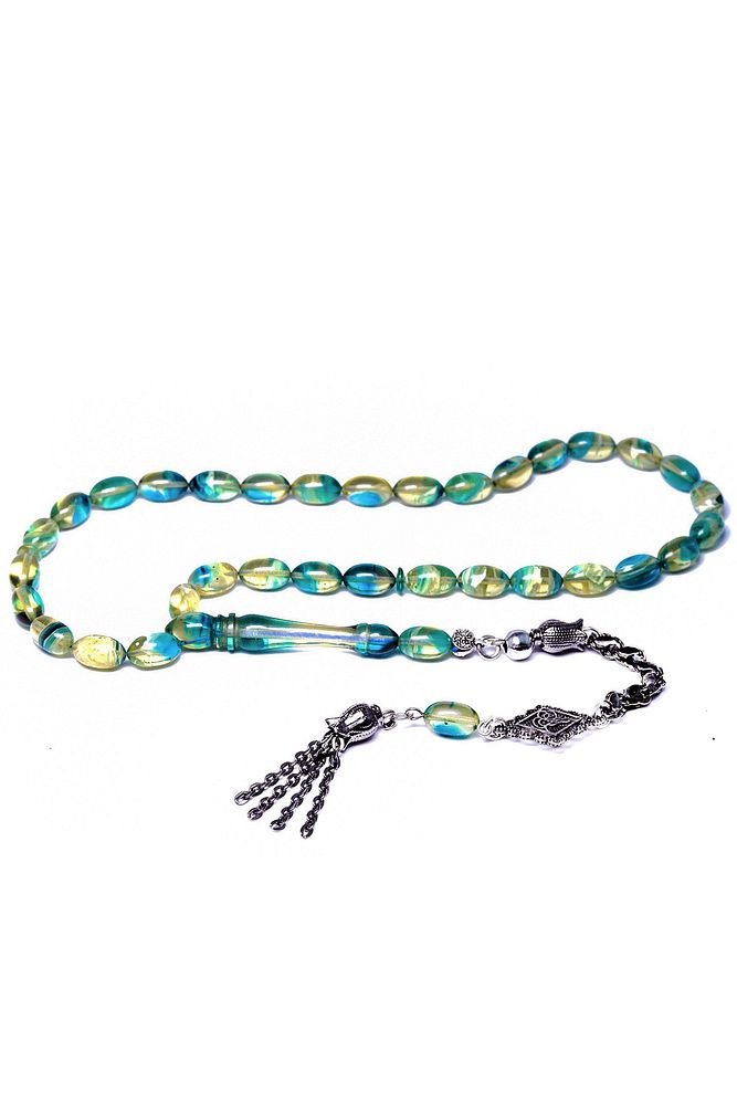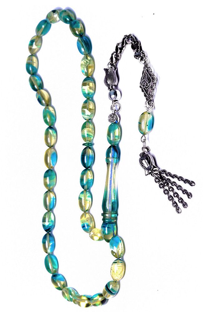 (Baş Ağrısı Sinir ve Stres); ; Tesbih Atölyesi, Sıkma kehribar tesbih, tasarımları özel olarak usta ellerde tasarlanır. Tasarımlarımız el yapımı olup sınırlı adette üretilmektedir. Tasarımlarda kullanılan püsküller düşük ayar gümüşten imal edilir. Tasarımlarda kullanılan kehribar taneleri hareli özel kalıplardan yapılır. Yapay reçine ile üretilmektedir. Ürünlerimiz renk almakta ve koku vermektedirler. ; ; Bu tasarımda; Mavi beyaz hareli özel muhteşem kalitede 1.kalite sıkma kehribar reçine kullanılmıştır. Her kehribar tanesi birbirinin aynısı olmadığı için küçükte olsa farklılıklar gösterebilir.; ; Üretildiği Malzeme; Sıkma Kehribar; Ana Renk; Mavi Beyaz Renk; Ağırlık; 20-30 gr; Tane Şekli; 7x11 mm; Tane Ölçüsü; Beyzi Kesim; Toplam Uzunluk; 20-30 cm; İmame ve Püskül Maddesi; Düşük Ayar Gümüş;