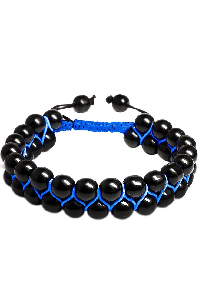 Sertifikalı Mavi Çift Sıra Parlak Doğal Oniks Taşı Bileklik