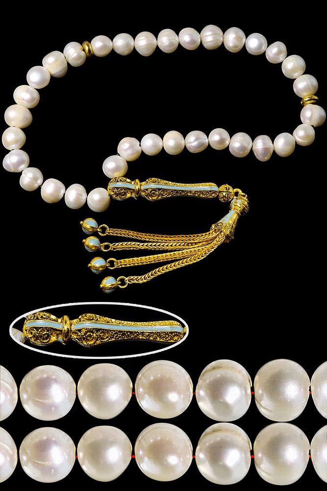 Sertifikalı Mineli Telkari Püskül Doğal Istiridye Inci Tesbih