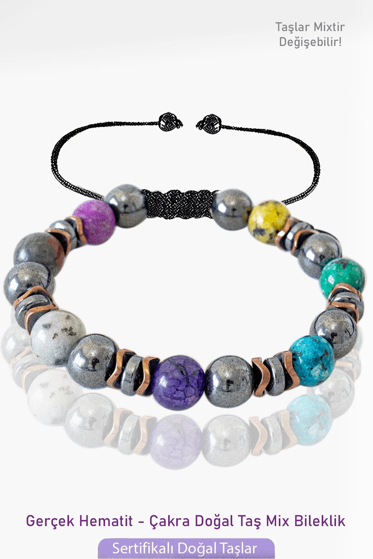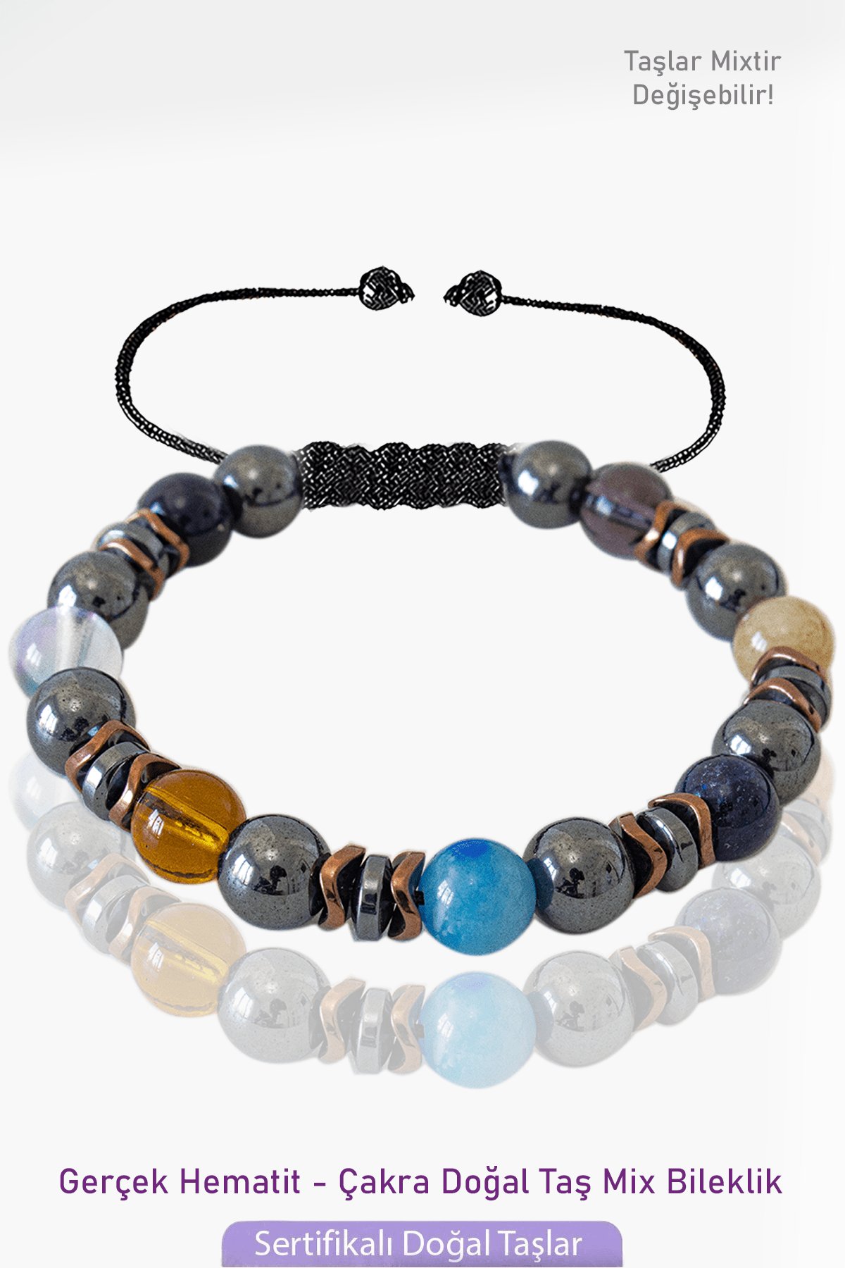 Sertifikalı Mix Gerçek Hematit - 7 Çakra Doğal Taş Bileklik