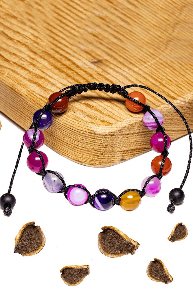 Sertifikalı Mix Renkli Akik Taşı Bileklik - Makrome
