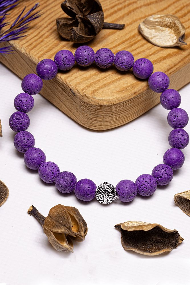 Sertifikalı Mor Renk Volkanik Lav Taşı Bileklik - Gümüş Aparatlı