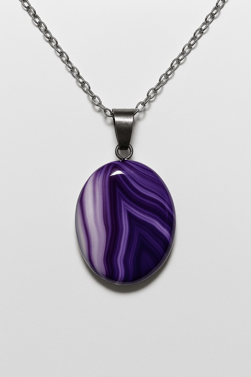 Sertifikalı Oval Mor Akik Taşı Kolye – Gümüş Aparatlı Doğal Şifa ve Zarafet İçin