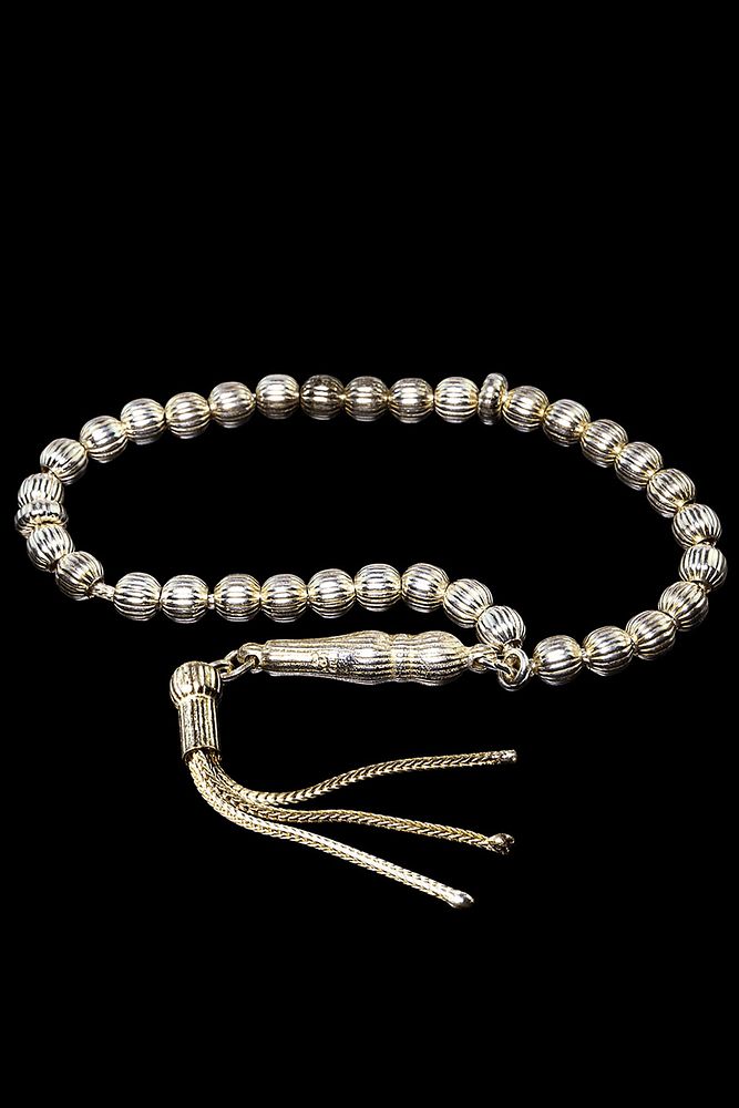 Sertifikalı Oymalı Küre Kesim 925 Ayar Gümüş Tesbih