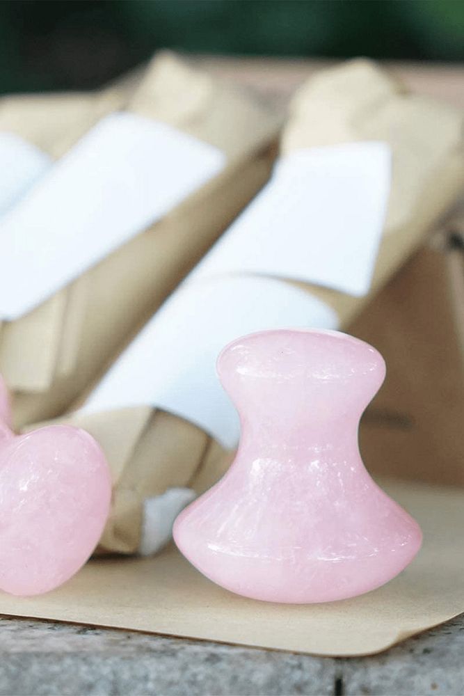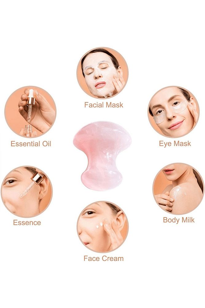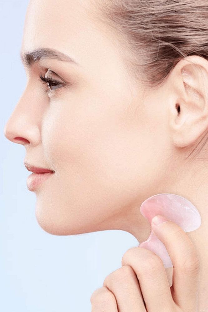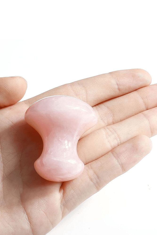 Sertifikalı Özel Kesim Gua Sha Pembe Kuvars Taşı - Vücut Ve Yüz Cilt Masaj Taşı