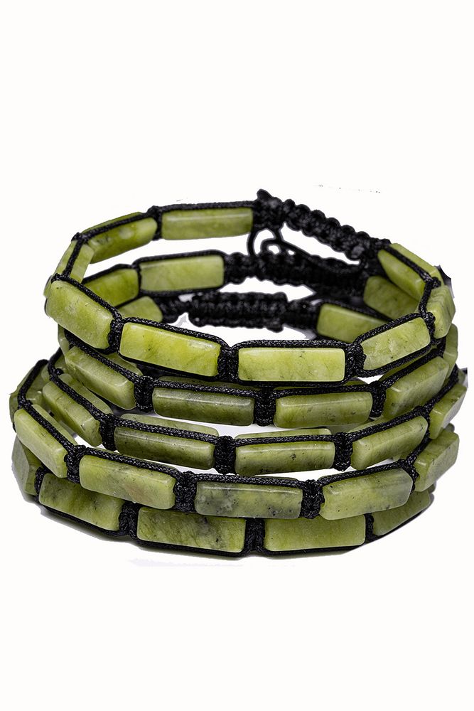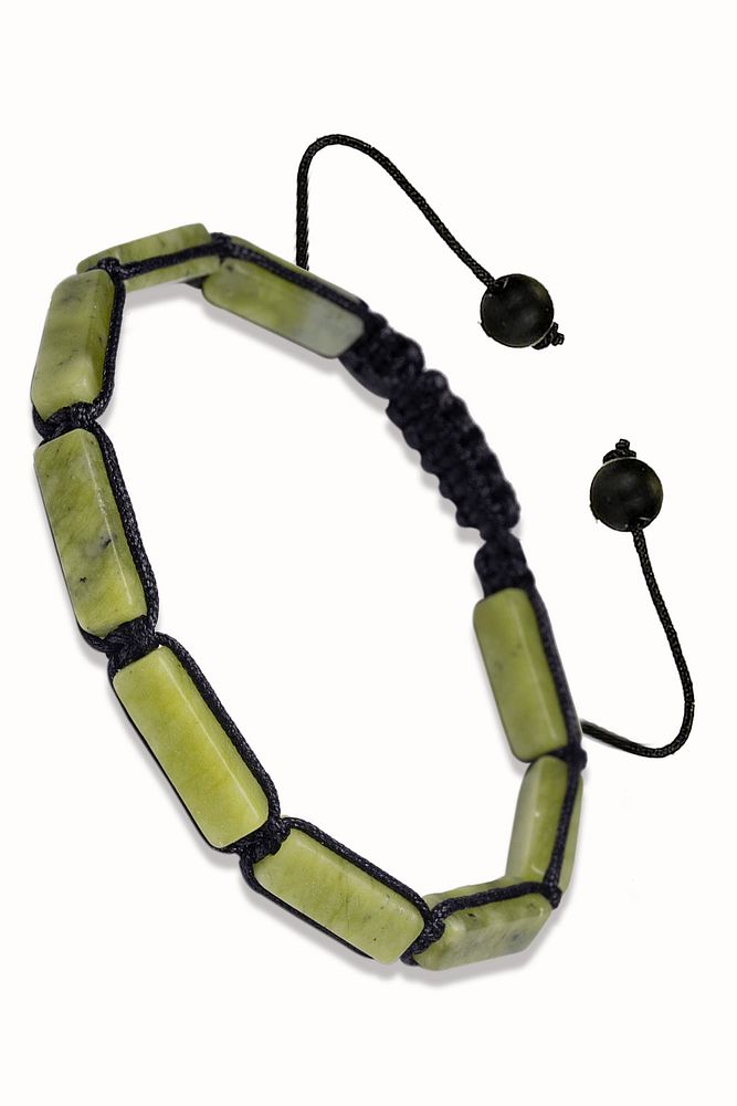 Yeşim taşı kullanılarak tasarlanmış makrome örgülü doğal taş bileklik ortalama 18 CM uzunluğunda olup 20-22 CM'ye kadar açılarak bileğe göre ayarlanabilir. Taşın yaklaşık ölçüsü 5X13.