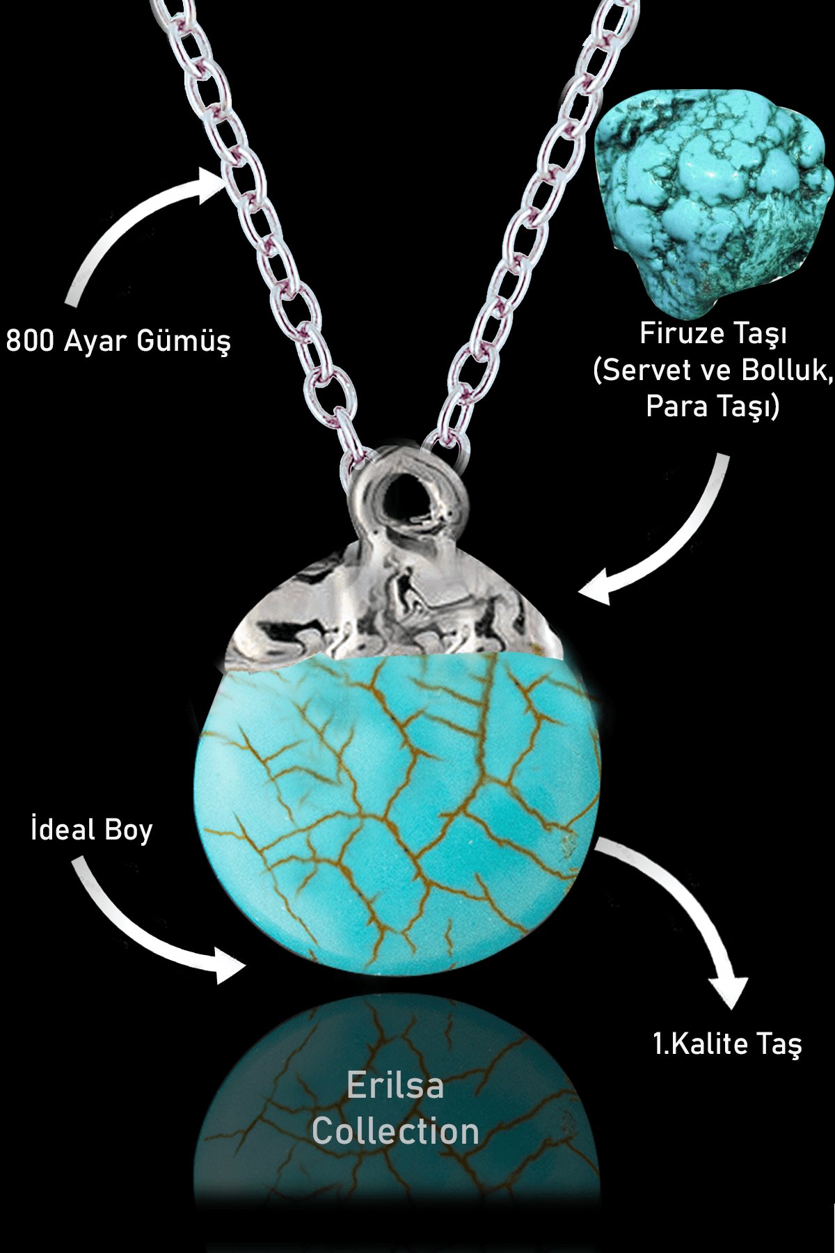Sertifikalı Para Model Firuze Taşı Kolye (Turkuaz Taşı) - Gümüş Alaşımlı