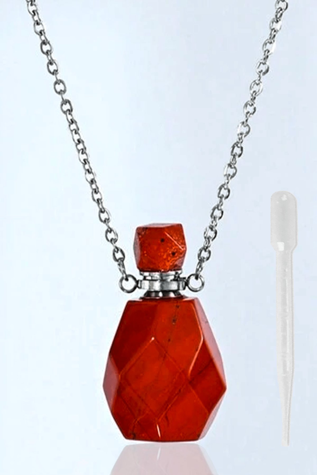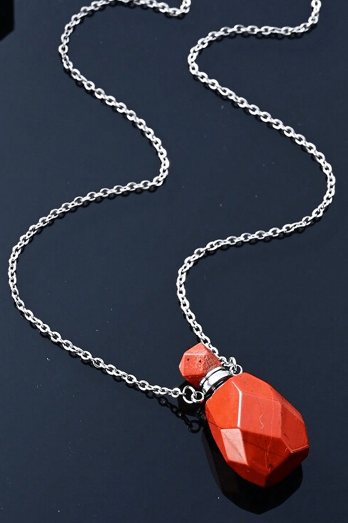 Kırmızı Jasper Doğal Taş Parfüm Şişe Tasarımlı Kolye |