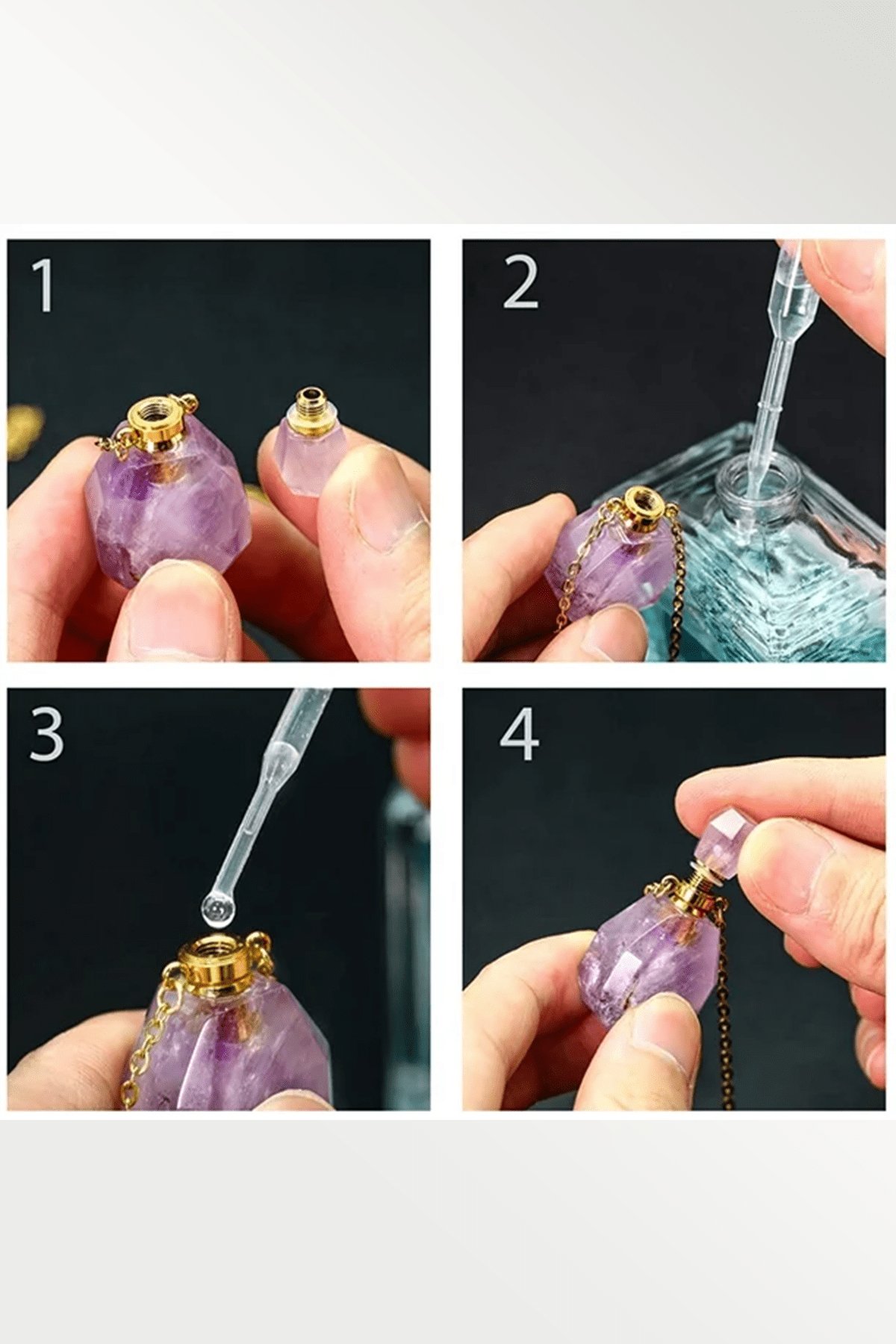 Siyah Obsidyen Doğal Taş Parfüm Şişe Tasarımlı Kolye |