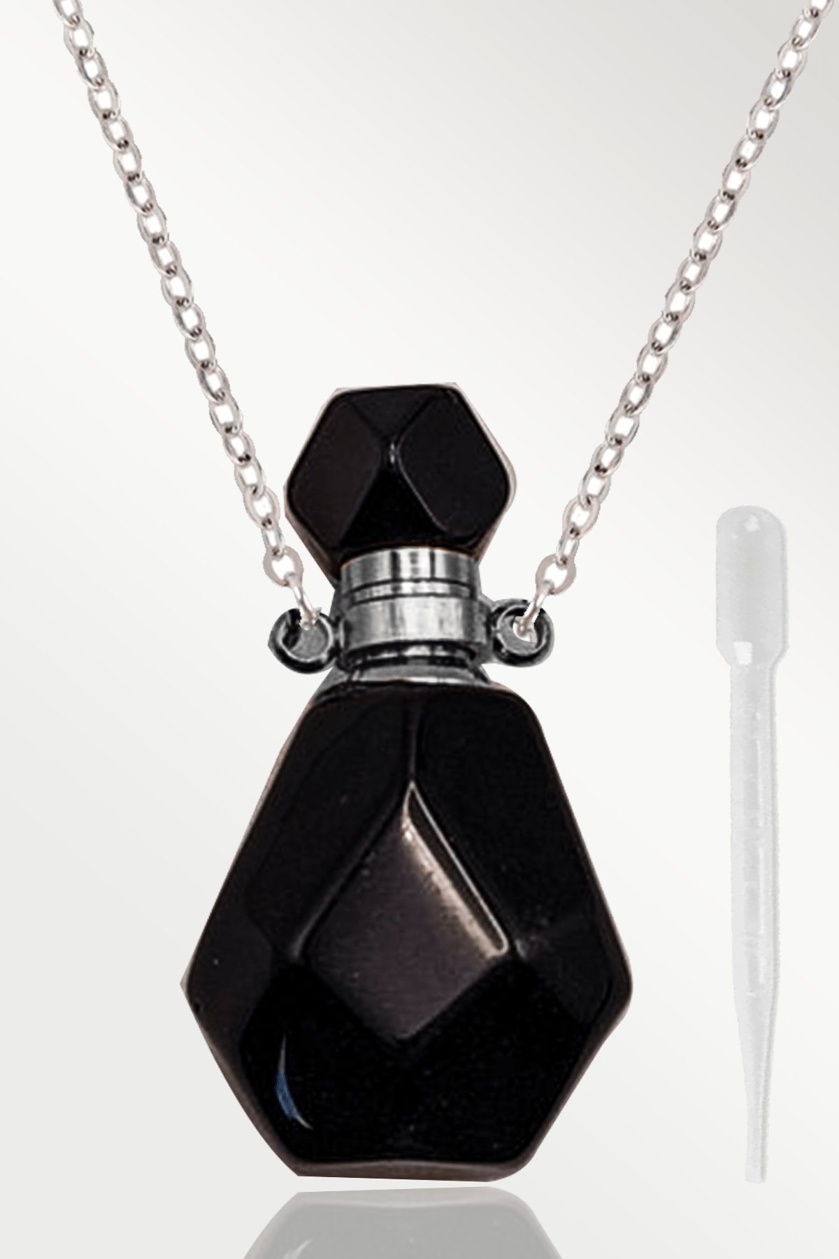 Sertifikalı Parfüm Şişe Tasarımlı Obsidyen Taşı Kolye - Gümüş Aparat