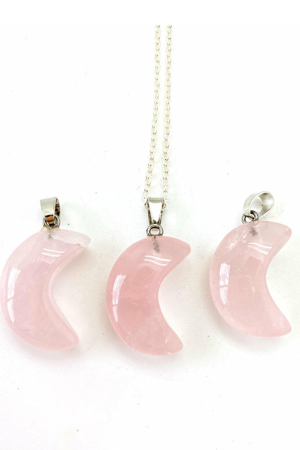 Sertifikalı Pembe Kuvars Doğal Taş Ay Model Kolye