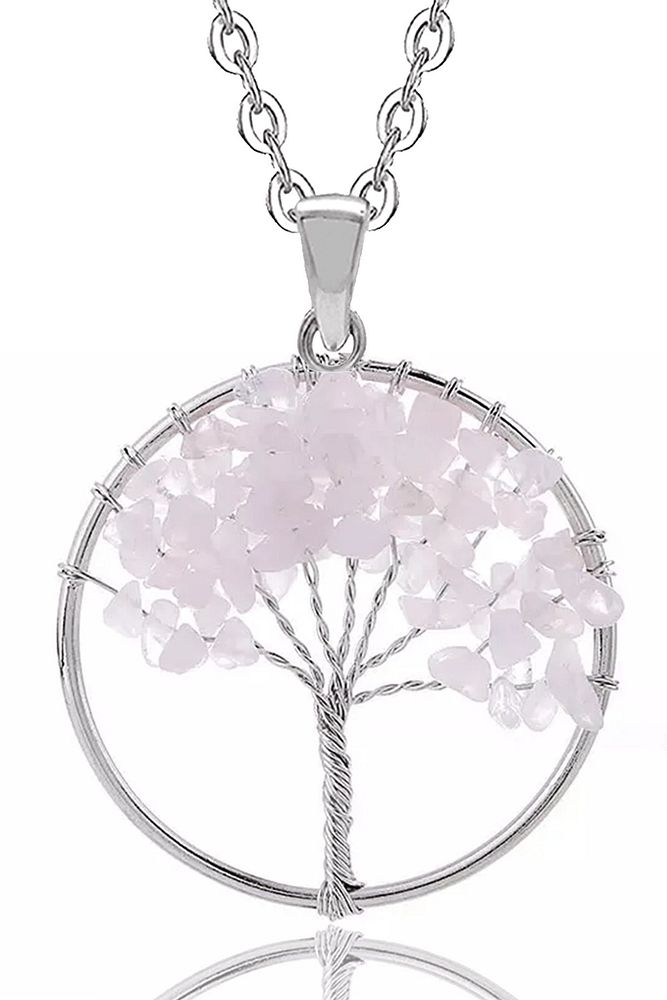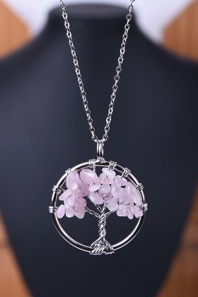 Sertifikalı Pembe Kuvars Taşı Hayat Ağacı Kolye