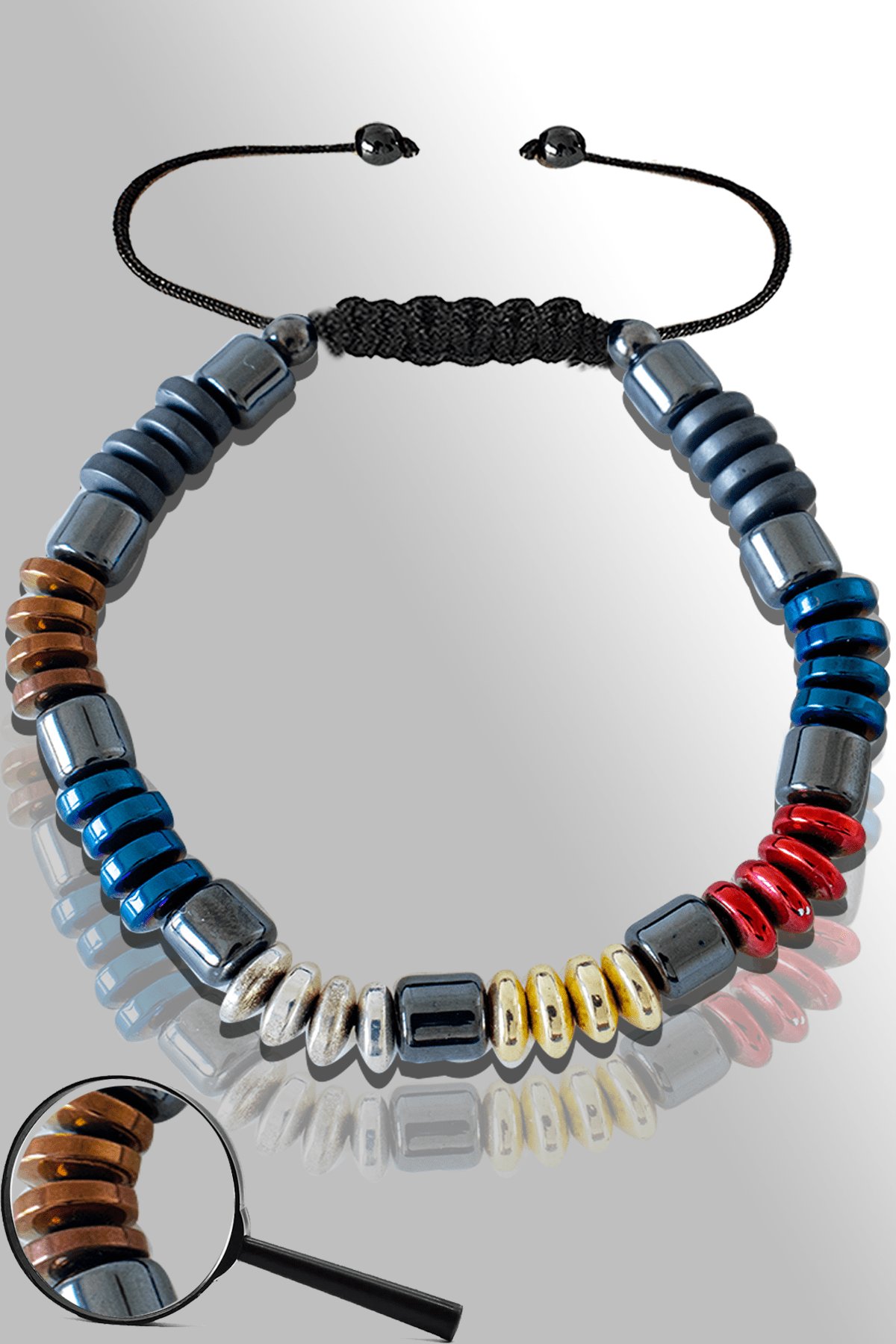 Sertifikalı Renkli Multicolor Hematit Taşı Bileklik - Ayarlamalı