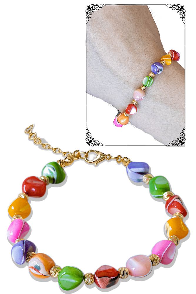 Sertifikalı Renkli Sedef Taşı Bileklik - Ayarlamalı
