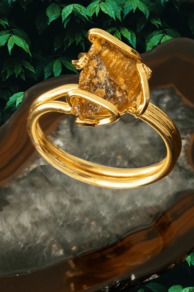 Sertifikalı Rokoko Model Altın Kaplama Ham Kaplan Gözü Taşı Yüzük - Ayarlamalı