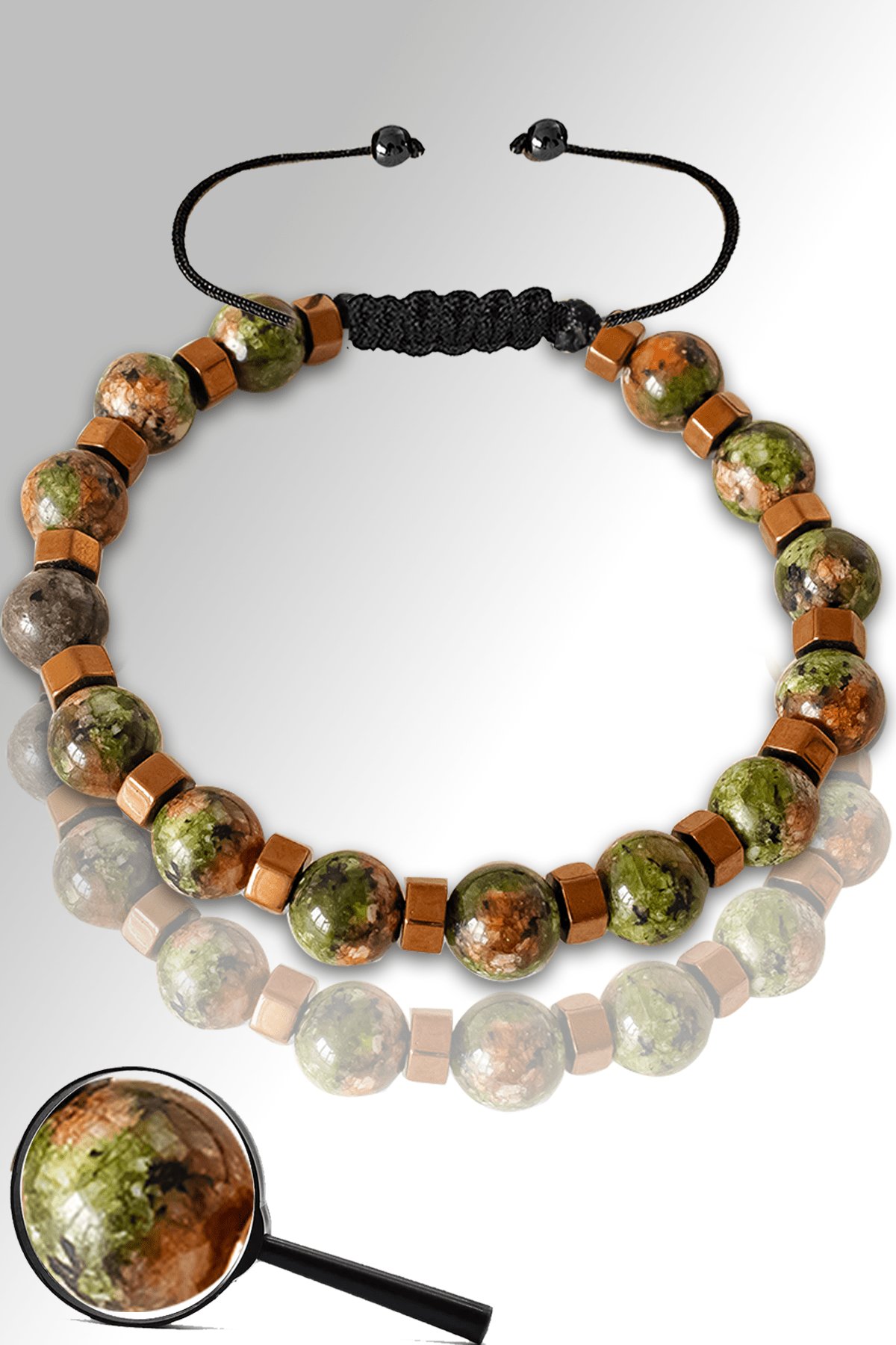 Sertifikalı Rose Hematit - Unakit Taşı Bileklik - Ayarlamalı