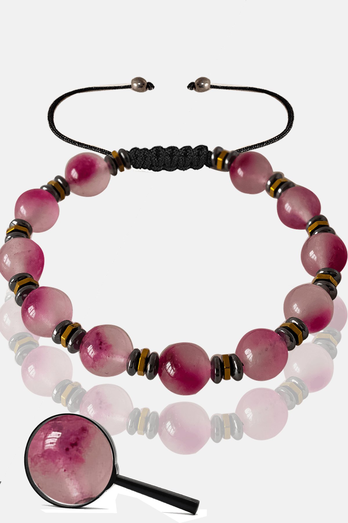 Sertifikalı Rose Hematit Pembe Renkli Kuvars Taşı Bileklik - Ayarlamalı