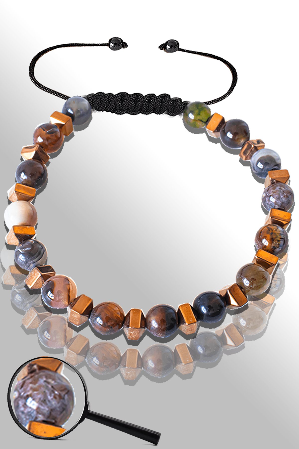 Sertifikalı Rose Hematitli 6 Mm Doğal Hint Akik Taşı Bileklik - Ayarlamalı