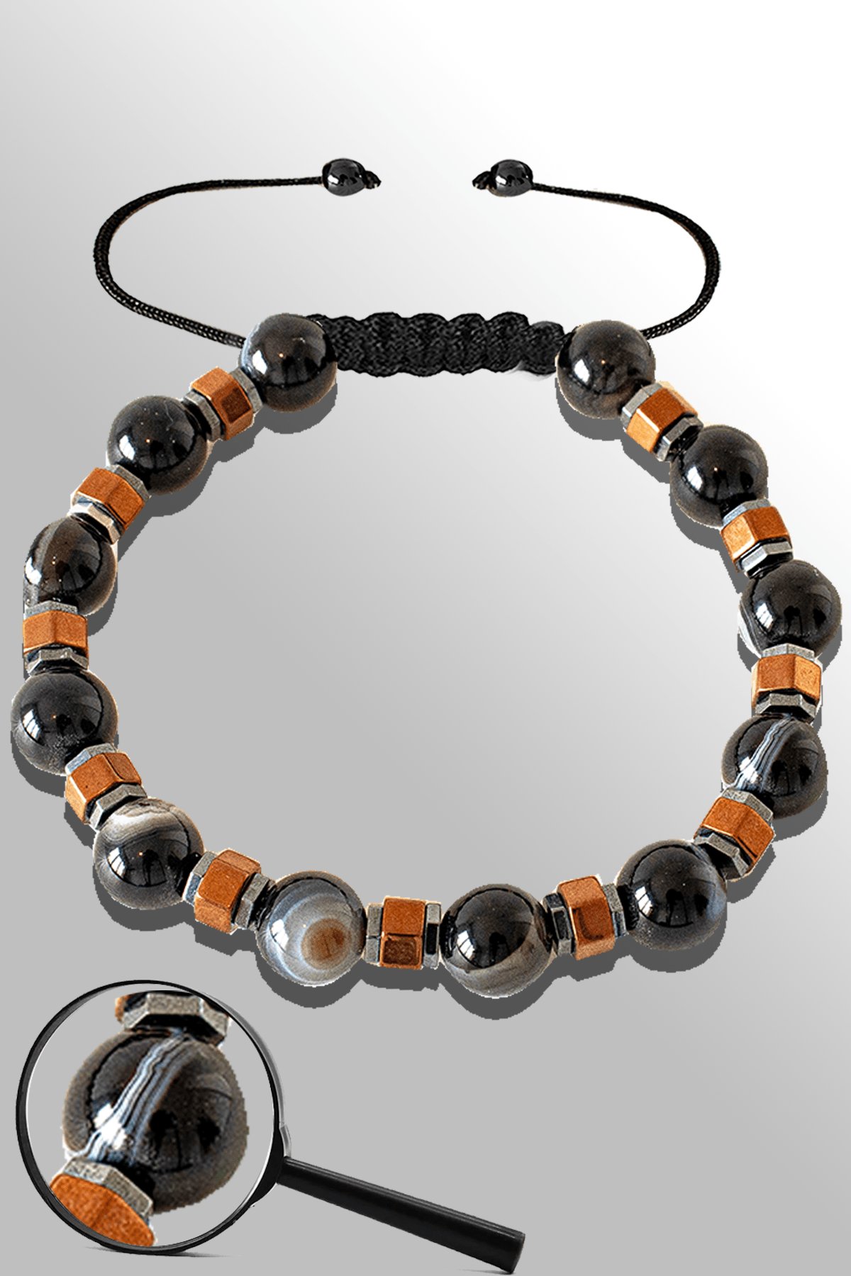 Sertifikalı Rose Hematitli Doğal Siyah Akik Taşı Bileklik - Göz Akiği