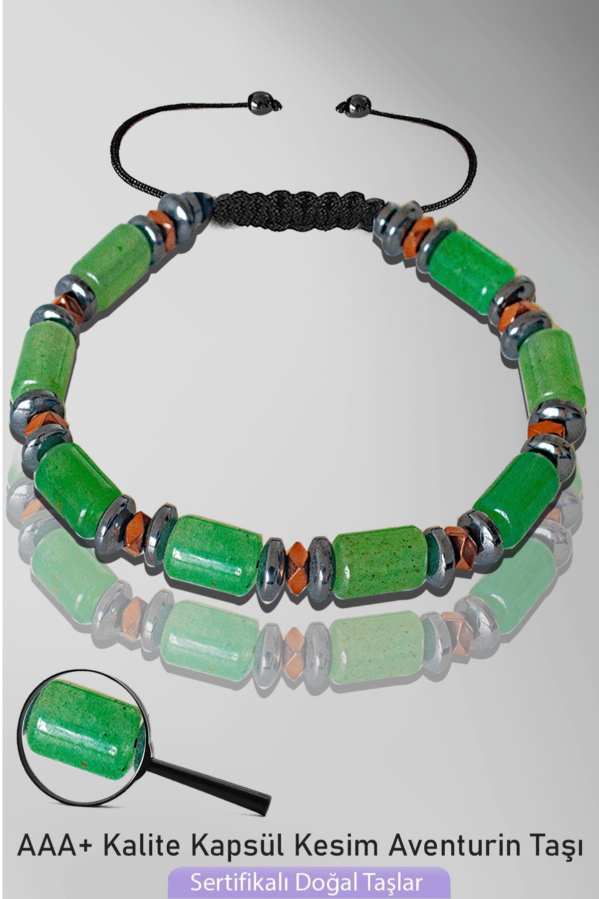 Sertifikalı Rose Hematitli Kapsül Model AAA+ Aventurin Taşı Bileklik