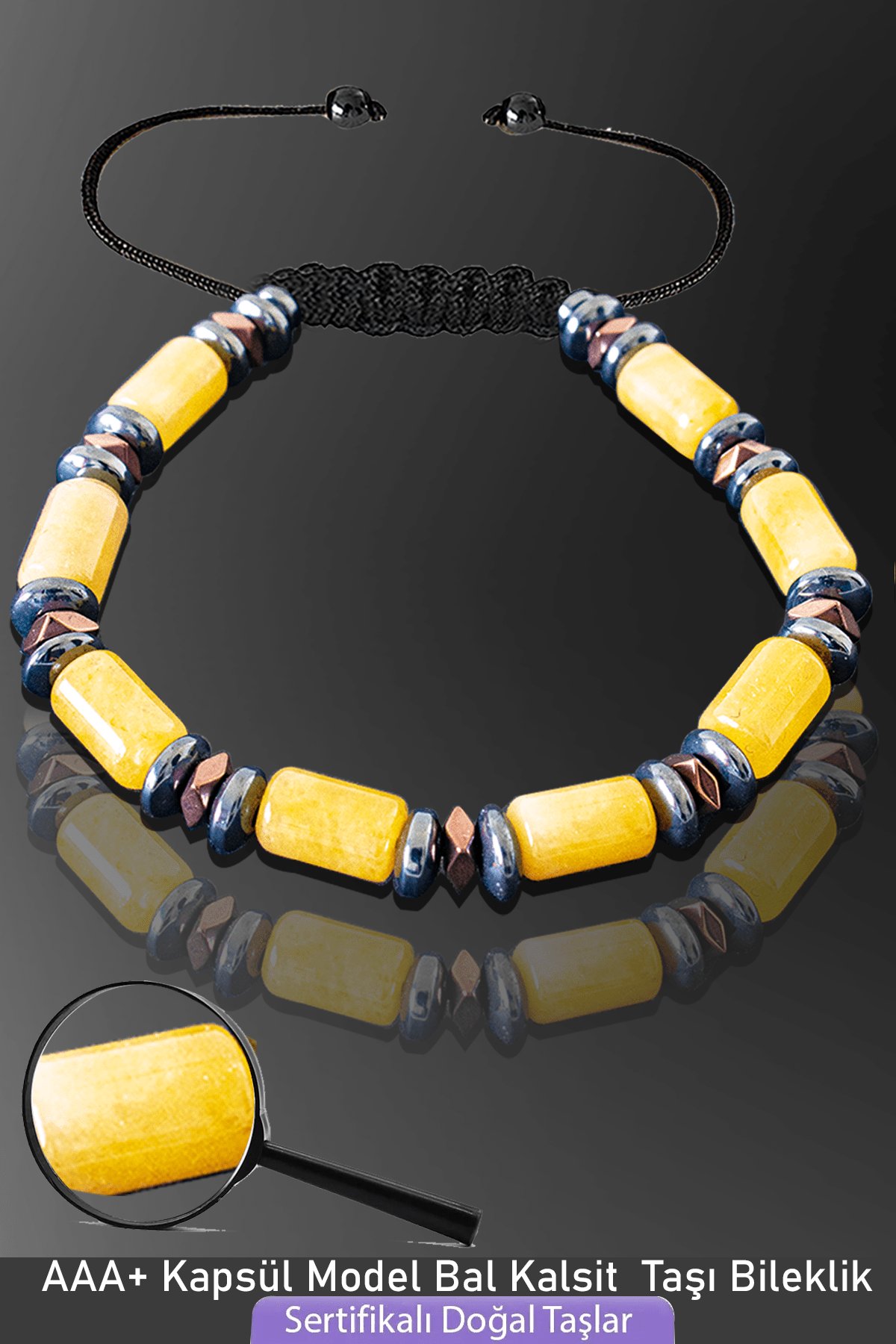 Sertifikalı Rose Hematitli Kapsül Model AAA+ Bal Kalsit Taşı Bileklik