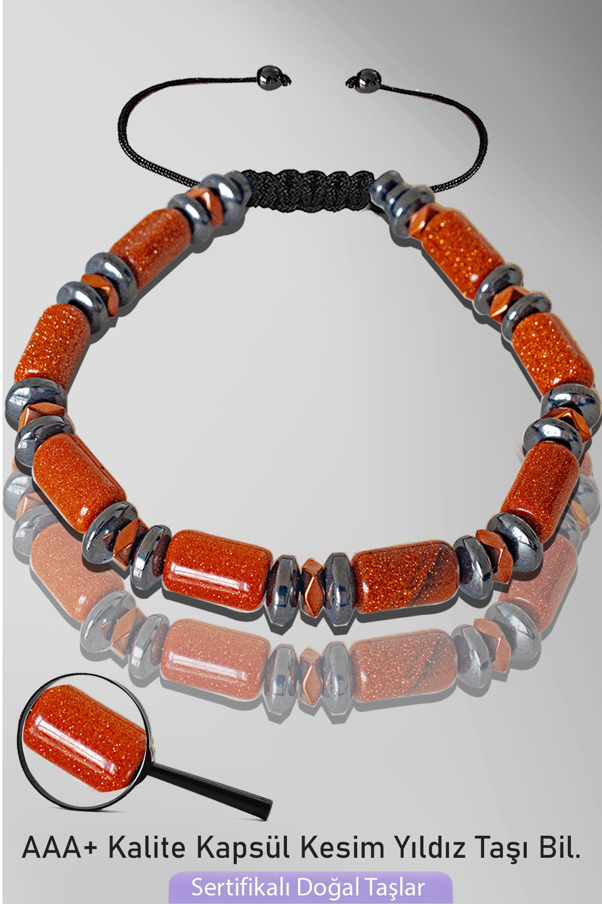 (Kahverengi Yıldız Taşı Doğal Taş Bileklik - %100 Doğal ve Sertifikalı)