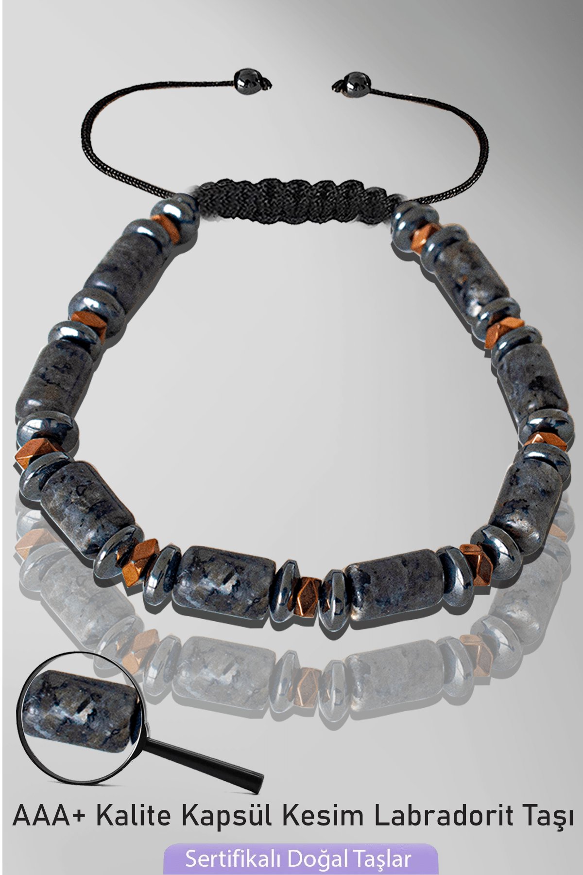 Sertifikalı Rose Hematitli Kapsül Model AAA+ Labradorit Taşı Bileklik