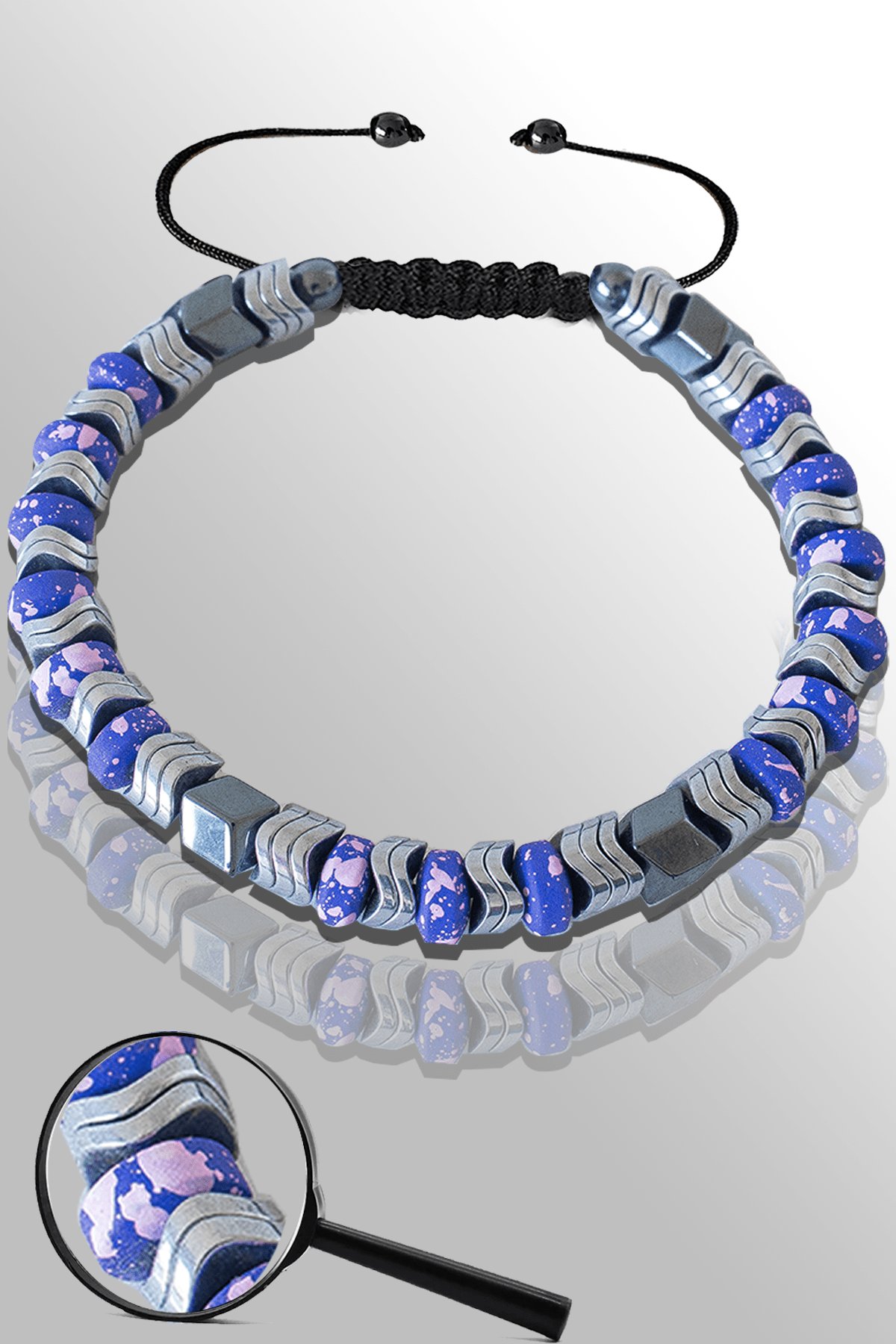 Sertifikalı Rose Renk Çavuş Model Mor Karlı Hematit Taşı Bileklik