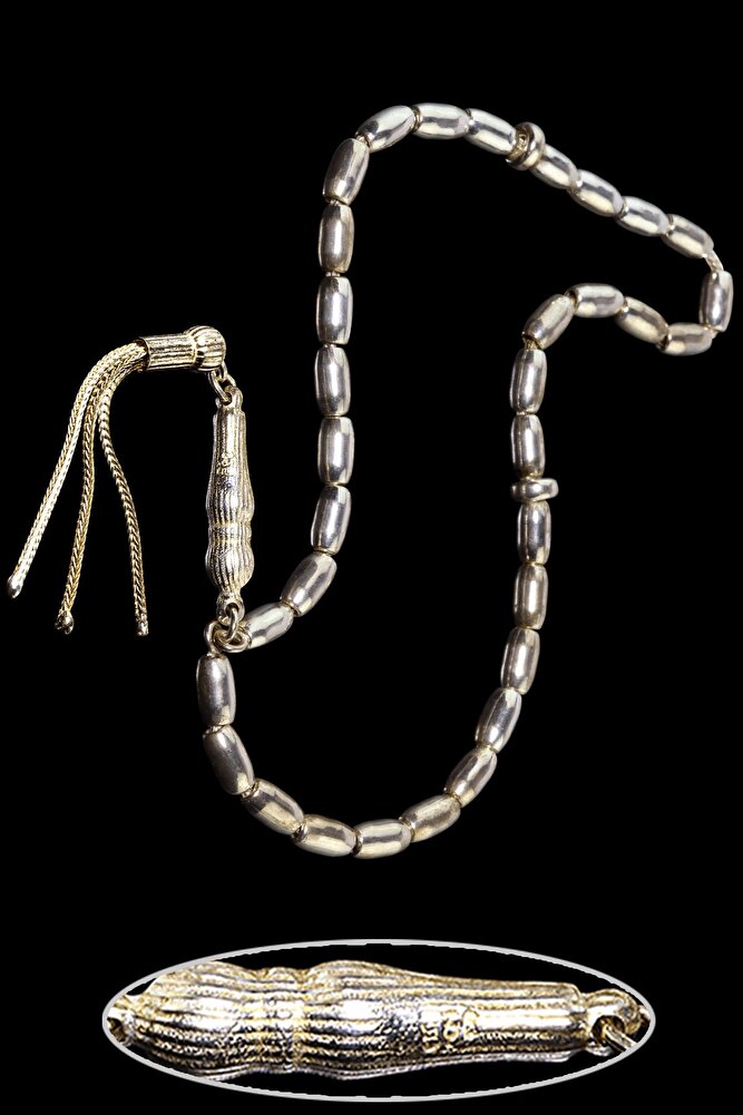 (Enfeksiyonlar İle Savaşarak Bağışıklığı Güçlendiren Maden); ; 925 ayar gümüş tesbih modelleri, \'\'Tesbih Atölyesi\'\' Atölyelerinde ustalarımız tarafından kuru torna işciliği ile elde özen ile tane tane işlenmektedir. Ürünlerimiz el işciliği olduğu için sınırlı sayıda üretilmektedir. Dünya\'nın en uygun fiyat garantisi ile ürünümüze hemen sahip olabilirsiniz.; ; Bu tasarımda; İpine kadar 925 Ayar Saf Gümüş kullanılmıştır. Şekil olarak kapsül kesim uygulanmıştır.; Üretildiği Maden; 925 Ayar Gümüş; Ana Renk; Doğal Renk; Ağırlık; 14.5 gr; Tane Şekli; 4x7 mm; Tane Ölçüsü; Kapsül Kesim; Toplam Uzunluk; 15-20 cm;