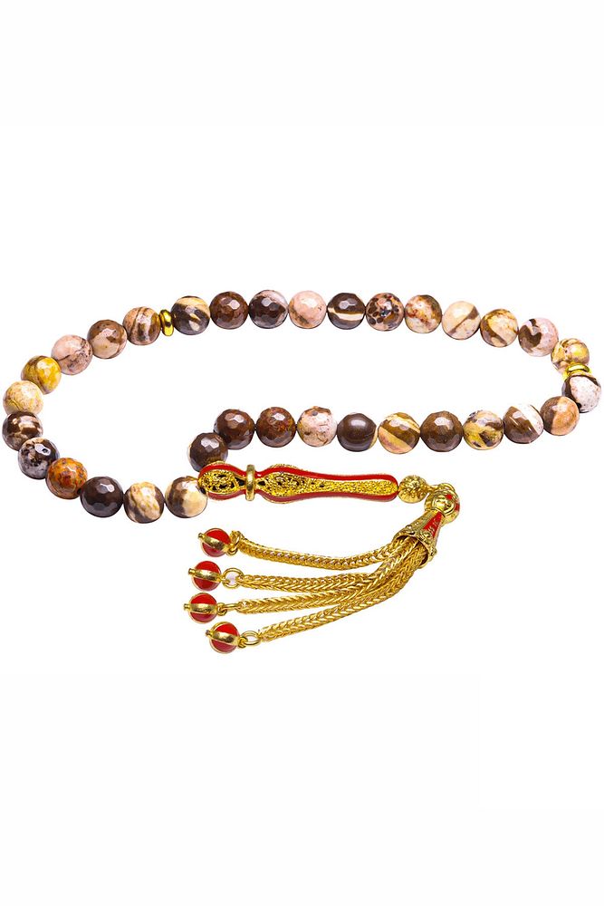 Ürün ya da Doğal Taş Açıklaması; ; (Karaciğer, Dalak, Mesaneyi Kuvvetlendirici ve Safra Kesesi, Denge Taşı); ; Jasper tesbih modelleri, ''Tesbih Atölyesi'' Atölyelerinde ustalarımız tarafından kuru torna işciliği ile elde özen ile tane tane işlenmektedir. Dünya'nın en uygun fiyatlarına %100 doğal yıldız taşı kullanmaktayız. Ürünlerimiz %100 gerçek ve kalitelidir. Negatif enerjileri iter ve pozitif enerjileri çeker. Taşıdığı kişinin sinirini stresini alacaktır. Dünya'nın en kaliteli doğal taşlarını ithal etmekteyiz.; ; Bu tasarımın yapımında; Doğal kahverengi bej renkli yıldız taşı kullanılmıştır. İmame ve püskül tasarımında; Sarı kırmızı mineli 24 ayar altın kaplama telkari imame ve püskül seti kullanılmıştır. Jasper yıldız taşı tesbih Çift kaplama atıldığı için renk atmaz ve kararmaz bir yapıya sahiptir. ; ; Üretildiği Taş; Jasper Taşı; Ana Renk; Doğal Renk; His Taşı Ağırlığı; 20-30 gr; Tane Şekli; 8x8 mm; Tane Ölçüsü; Küre Kesim; Toplam Uzunluk; 20-30 cm; İmame ve Püskül Maddesi; Düşük Ayar Gümüş;