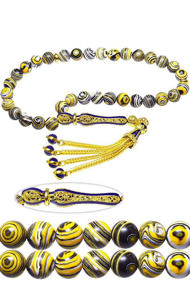 Sertifikalı Sarı Mavi Renk Telkari Püsküllü Fransız Galalit Tesbih